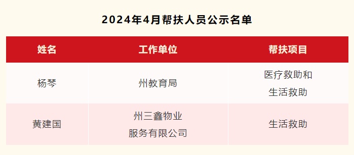 根据《关于印发〈湖北省工会困难职工档案管理实施细则〉〈湖北省工会困难职工专项帮扶资金使用管理实施细则〉〈湖北省工会送温暖资金使用管理实施细则〉的通知(鄂工办〔2020〕26 号)文件的有关精神,经基层工会申报,州总工会拟对2名家庭存在困难符合建档立卡条件的职工进行帮扶救助。