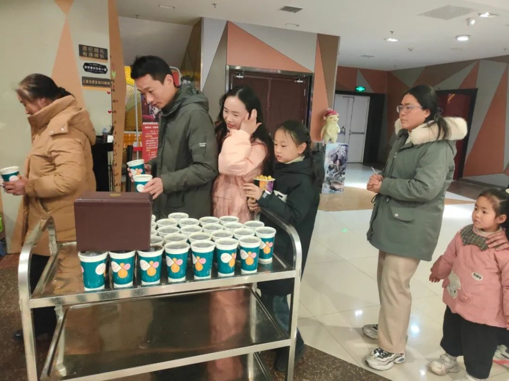 电影开场前,利川市总工会工作人员耐心引导大家在“湖北工会”小程序上领取观影券,并筹措资金为外卖骑手的家属们购买了电影票和热饮,让大家既能观看到精彩纷呈的电影,也能享受和家人相处的幸福时光。