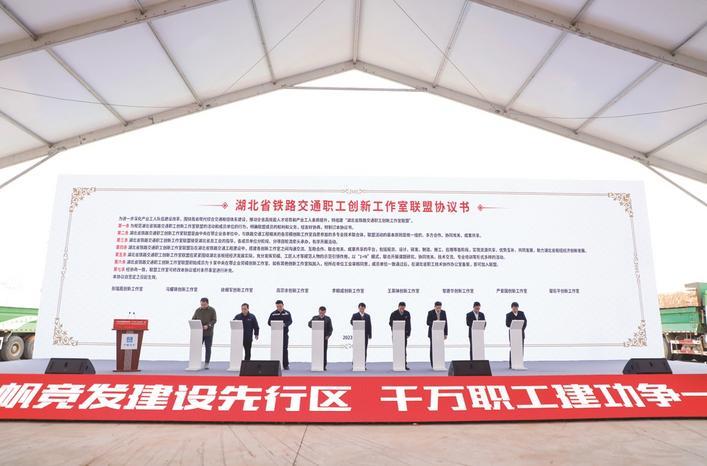 湖北省铁路交通职工创新工作室交流联盟协议签署现场。