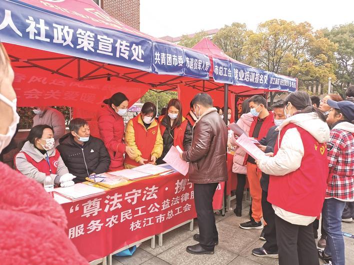 枝江市总工会开展“尊法守法·携手筑梦”行动。