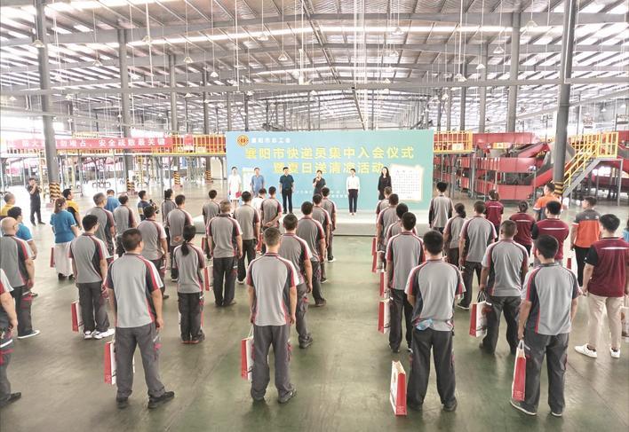 襄阳市总工会、襄阳市邮政管理局联合在顺丰襄阳分拨中心举行快递员集中入会仪式。