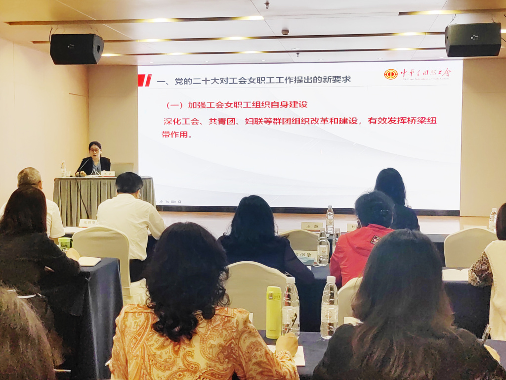全国总工会女工部副部长洪莎在本次培训班作了题为“深入学习贯彻党的二十大精神切实做好新时代工会女职工工作”的专题辅导。培训班开设了新时代工会工作高质量发展的思考、职场女性大健康、“玫瑰书香”女职工主题阅读等课程,并就我省工会女职工工作开展了经验交流。