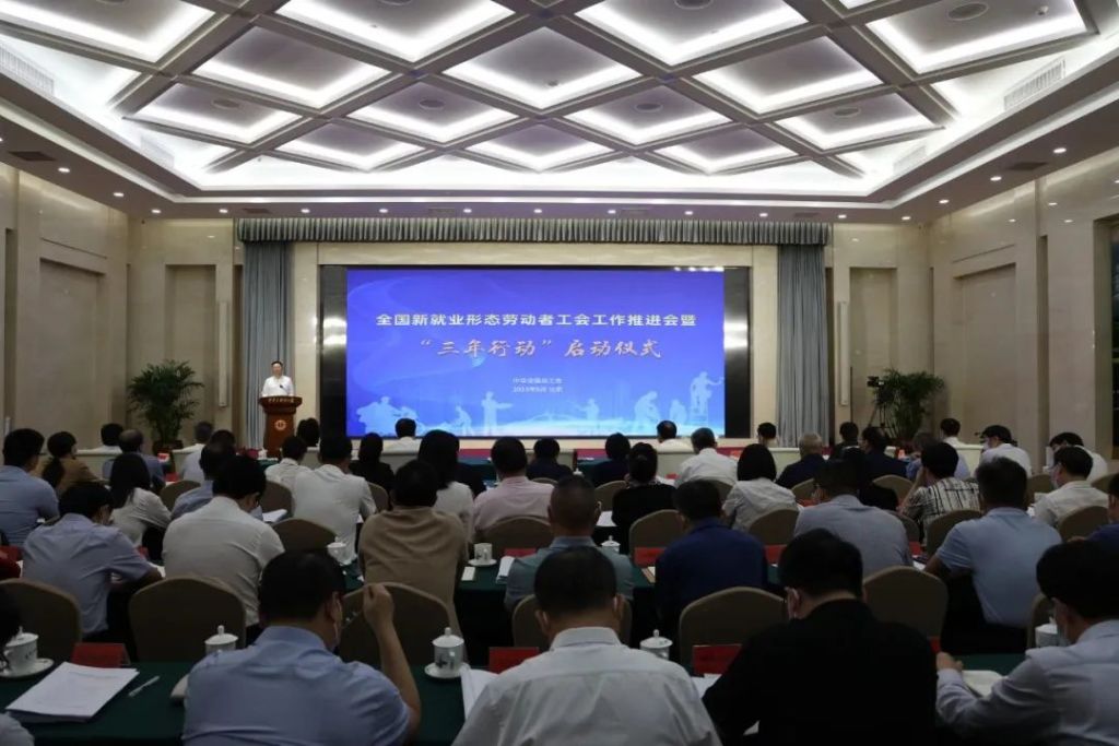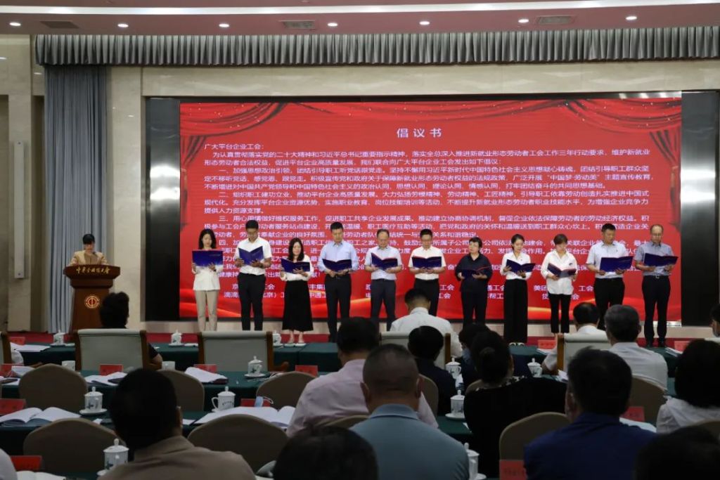 全总副主席、书记处书记谭天星主持会议。会上,北京、吉林、上海、浙江、广东、四川等6个省市总工会和京东、顺丰、路歌、饿了么、圆通、美团等6家平台企业工会负责人介绍经验做法。12家头部平台企业工会联合发出倡议,呼吁广大平台企业落实全总“三年行动”要求,维护新就业形态劳动者合法权益,促进企业高质量发展。