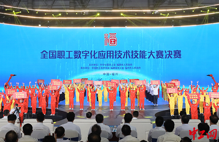 6月7日,全国职工数字化应用技术技能大赛决赛在福建福州拉开帷幕。图为参赛队伍风采展示。王鑫 摄