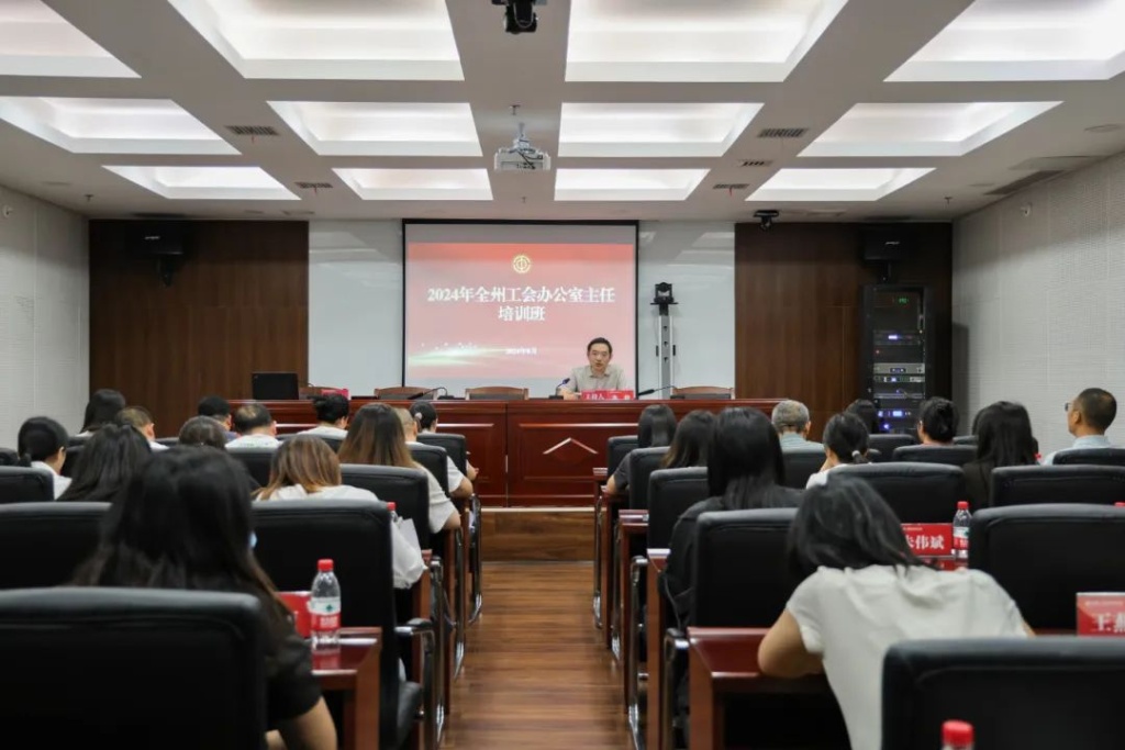 为进一步增强全州工会系统办公室干部政治素养和业务能力,高质量推进全州工会工作,8月29日至30日,2024年全州工会系统办公室主任培训班在州工人文化宫举办。恩施州总工会全体干部职工及八县市总工会分管领导、办公室主任参加培训,州总工会党组成员、副主席李俊参加会议并提出工作要求。