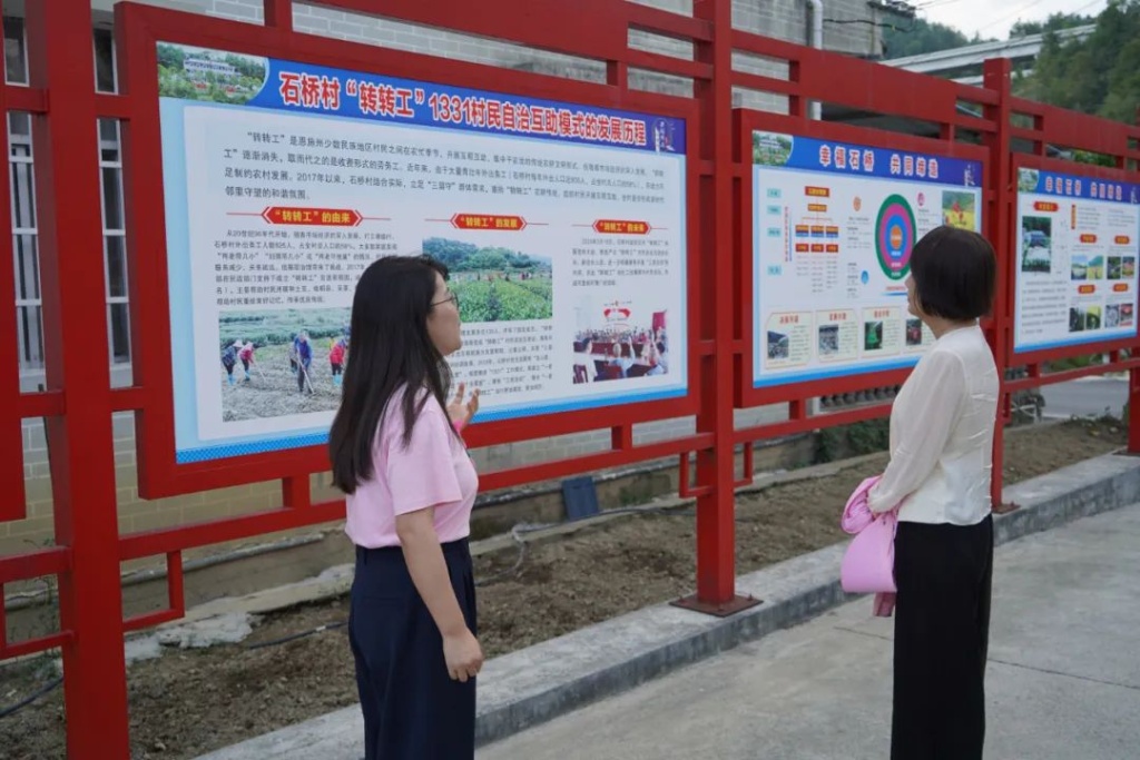 “我们石桥村就是在党建引领‘一纵’的领导下,在工会、妇联、‘转转工’、村民等力量‘一横’的协助下,在这‘一纵一横’间,共同建设成了村民称赞、满意的美好家园。”在石桥村,王兰英实地听取了基层社会治理工作情况,参观了子女托管班、村史馆、积分超市、党员议事厅、上坝议事亭等,对石桥村工会组织参与基层社会治理、推进共同缔造工作走深走实所取得的成效表示肯定。