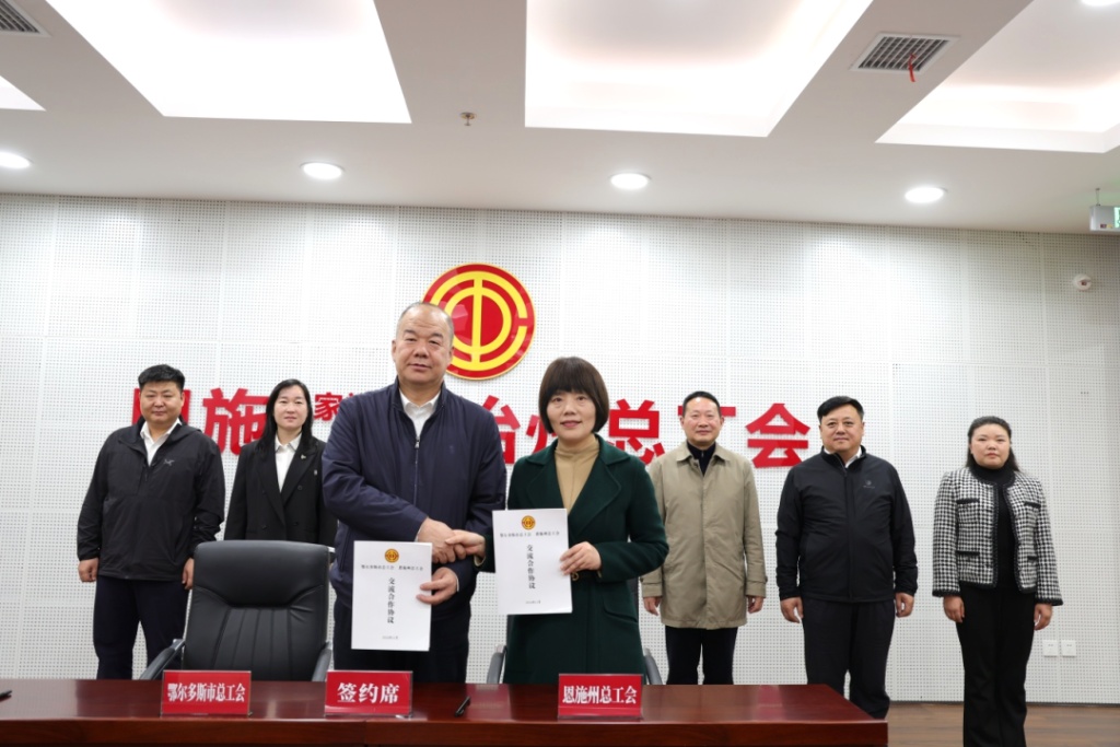 11月19日,鄂尔多斯市总工会党组书记、常务副主席金山一行来恩施州考察学习,并与恩施州总工会签订交流合作协议。州总工会党组书记、常务副主席王兰英参加签约仪式。期间,2024年鄂尔多斯市深化产业工人队伍建设改革专题培训班在恩施州农科院开班,鄂尔多斯市各级工会机关、部分重点企业60余名工会干部参加本次培训。